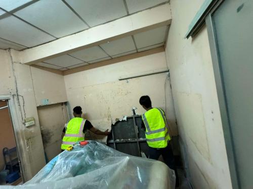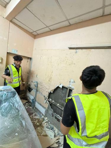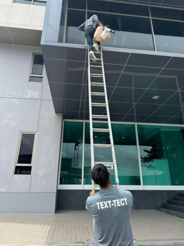 สเตปหลุมกลม สเต็ปเลื่อย ฝ้าทีบาร์ ฝ้าแขวน ผนังเบากั้นห้อง และทาสีโรยตัวอาคารตึกสูง